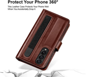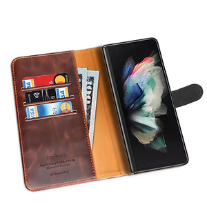Samsung Z Fold 5 Leather Flip 2 in 1 Detachable Front and Back Wallet Case Cover With S Pen Holder(Brown)