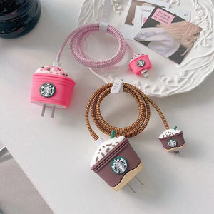 Starbucks Theme Silicone Cable Protector and Adapter Case For iPhone Charger