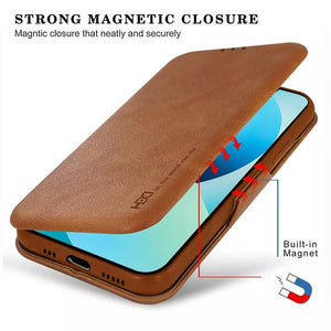 Shell Style Leather iPhone 13 Mini Flip Cover With Card Holder Brown Clearance Sale