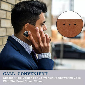 ✔Precise Cutouts & Wallet Design - Specifically designed for your iPhone which make it allows full access to all features (buttons, speakers, cameras, sensors). the card slot portion has a convenient cut-out where with a simple thumb maneuver your cards are exposed for you and you can talk on the phone with the cover closed.