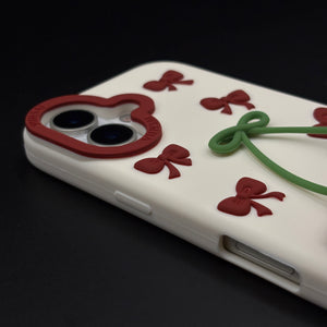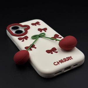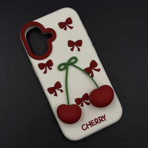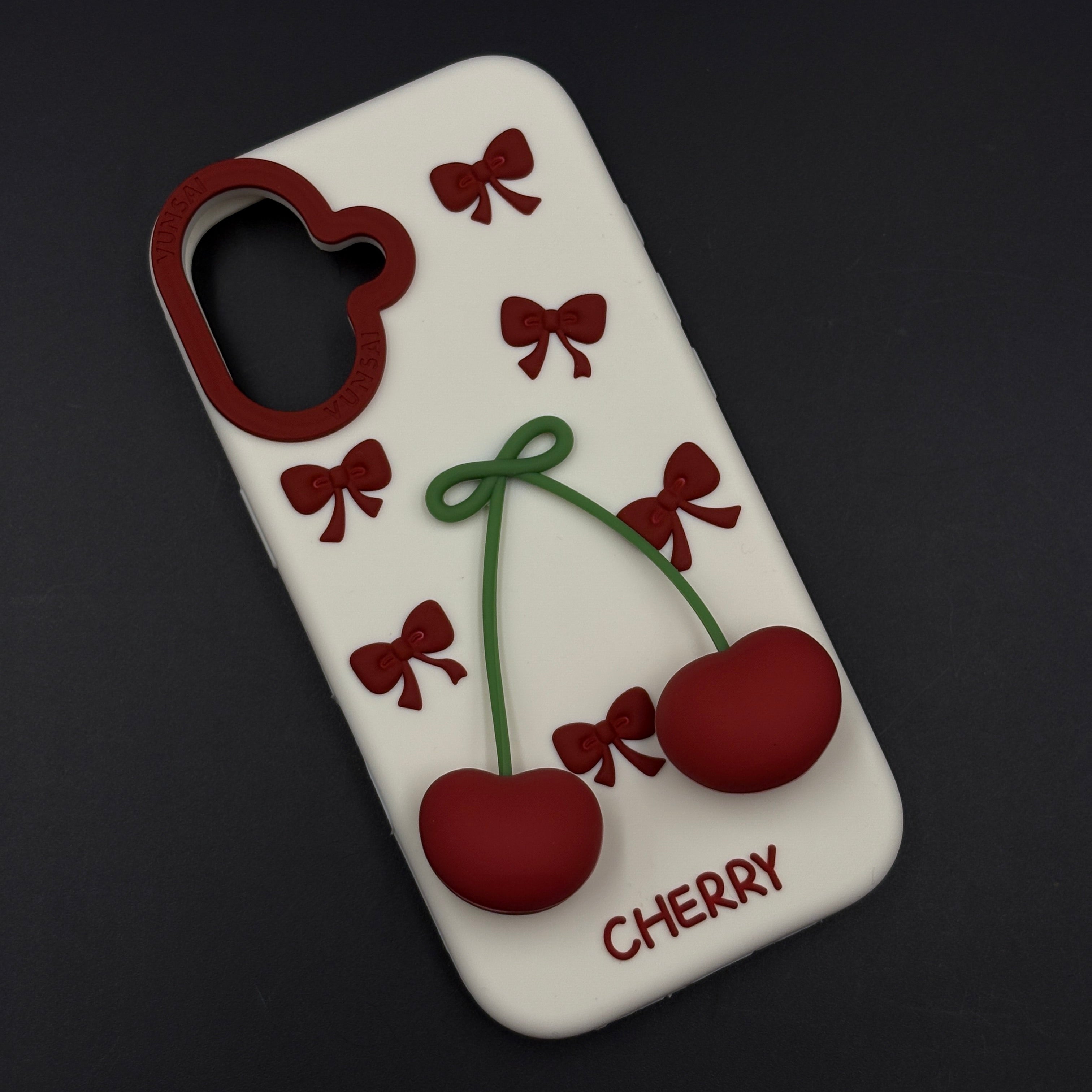 Silk Feel Cherry Silicone Phone Case Cover for iPhone 17 | 3D Fruit Pattern Soft Cover