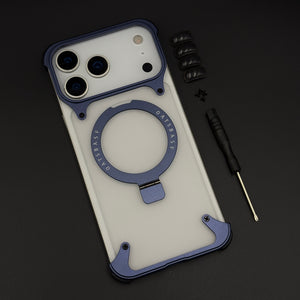 Smokey Frameless Metal Border MagSafe Mobile Case Cover with Screwdriver Kit for iPhone 17 Series
