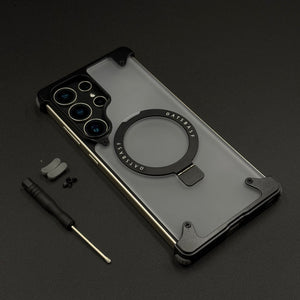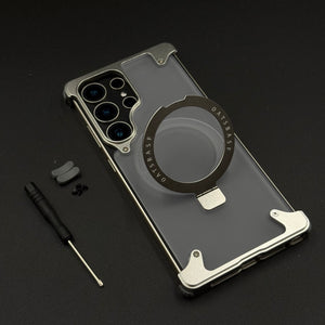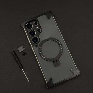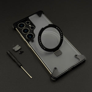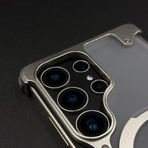 Smokey Matte Metal Frame Case for Samsung Galaxy S25 Ultra | MagSafe Ring Stand | Translucent Back