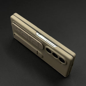 Experience the perfect balance of elegance and protection with this smooth silk feel silicone case, designed exclusively for the Samsung Galaxy Z Fold 7. The soft-touch material offers a premium hand feel, while the secure wristband adds both style and grip. The built-in kickstand makes hands-free viewing effortless, and the included front screen protector ensures 360° coverage.