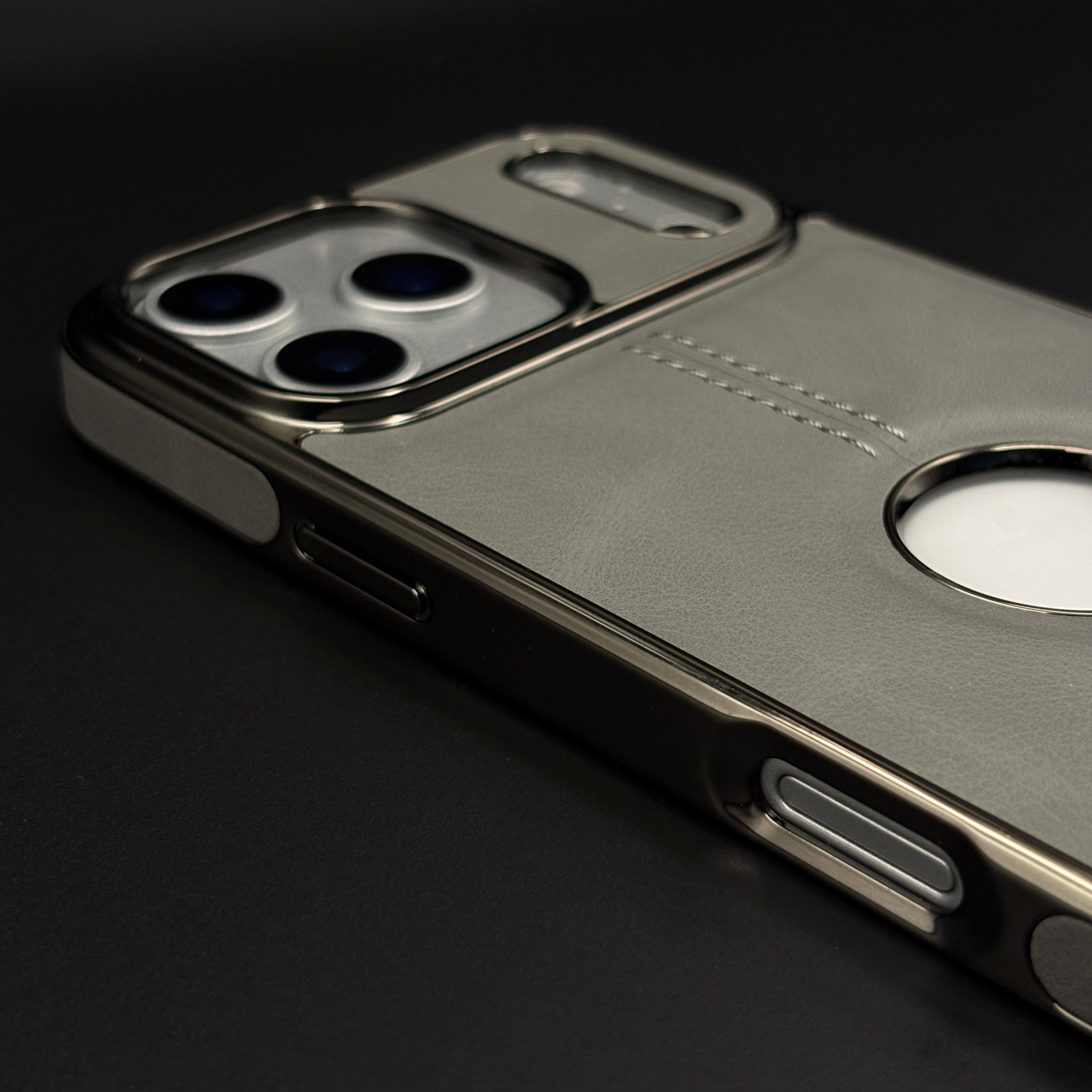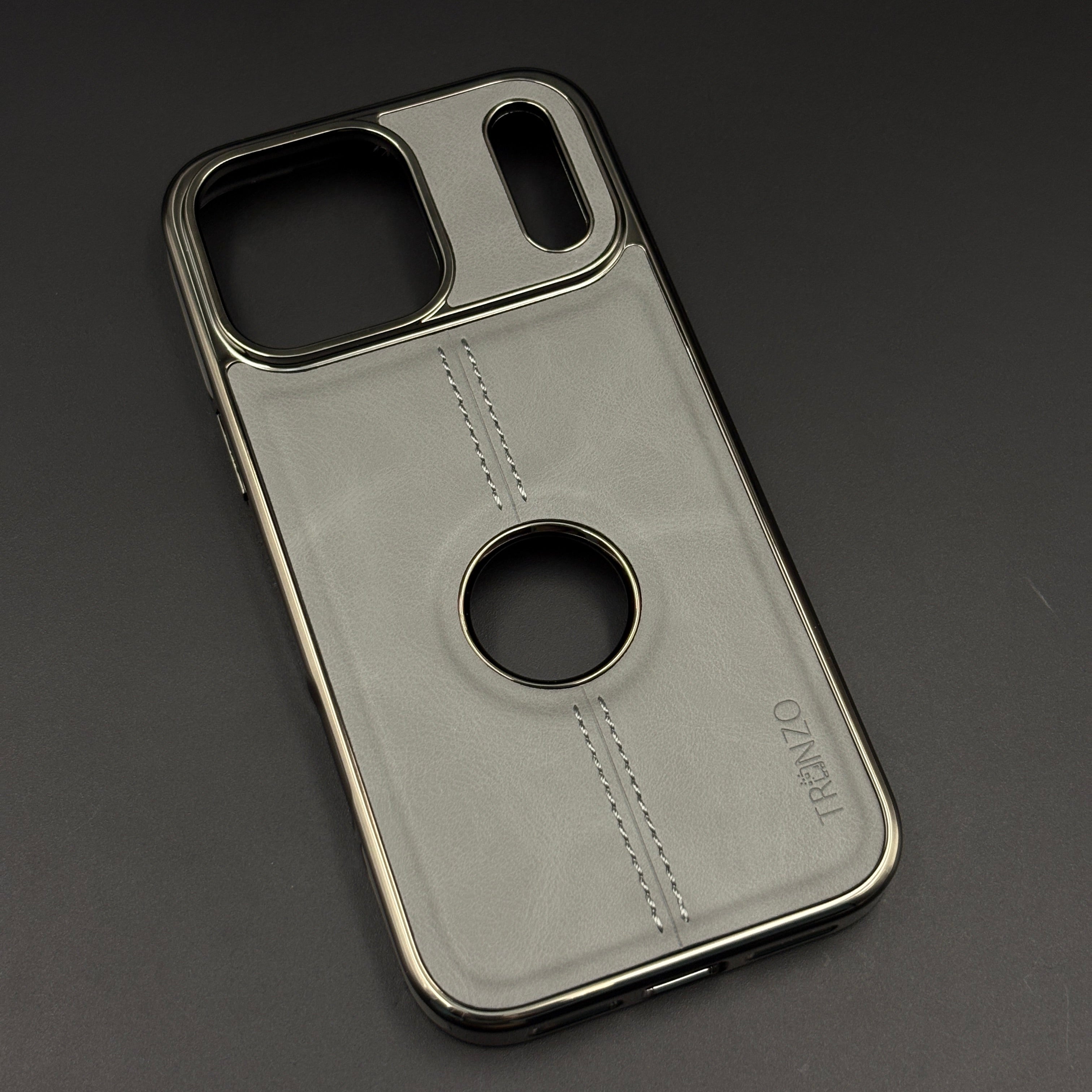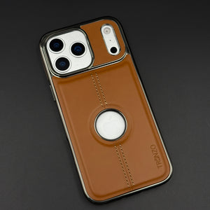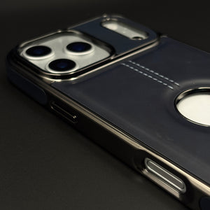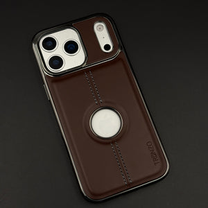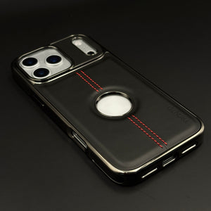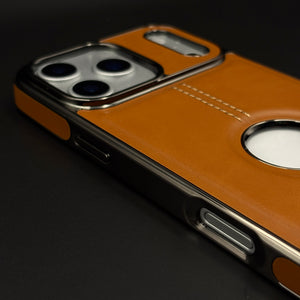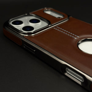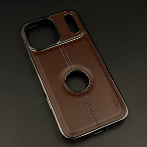 Stitch Leather Chrome Mobile Case Cover for iPhone 17 Series | Logo Cut Back