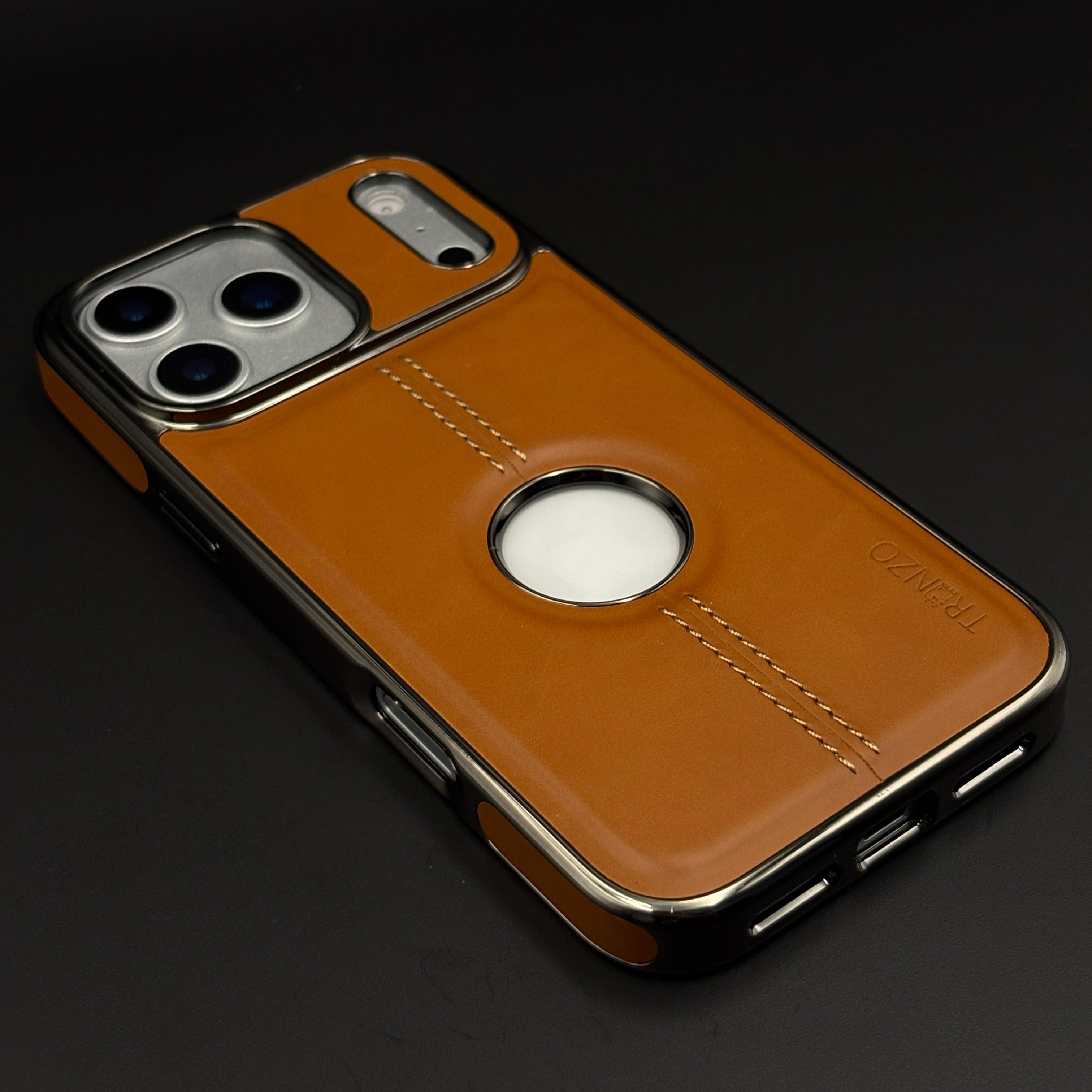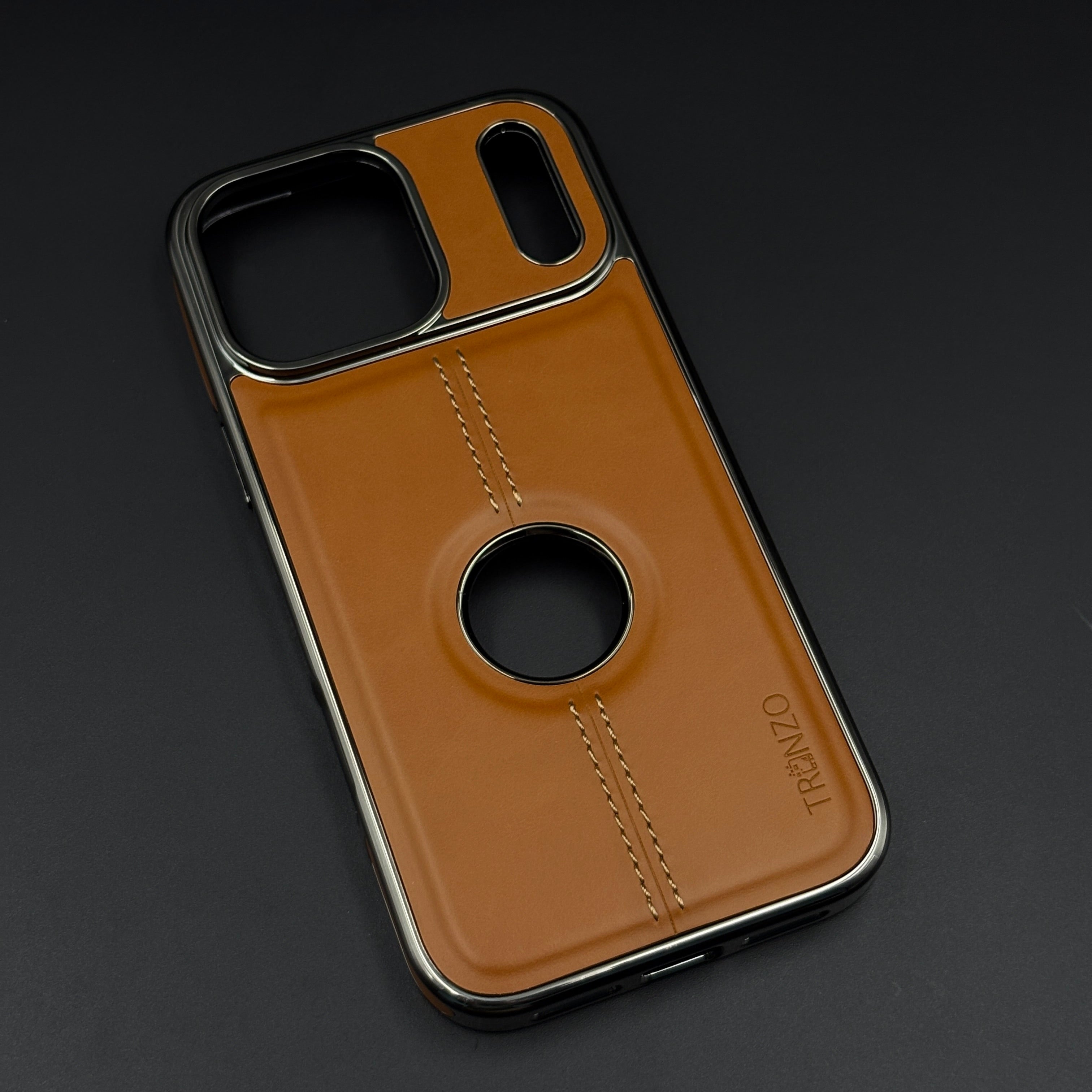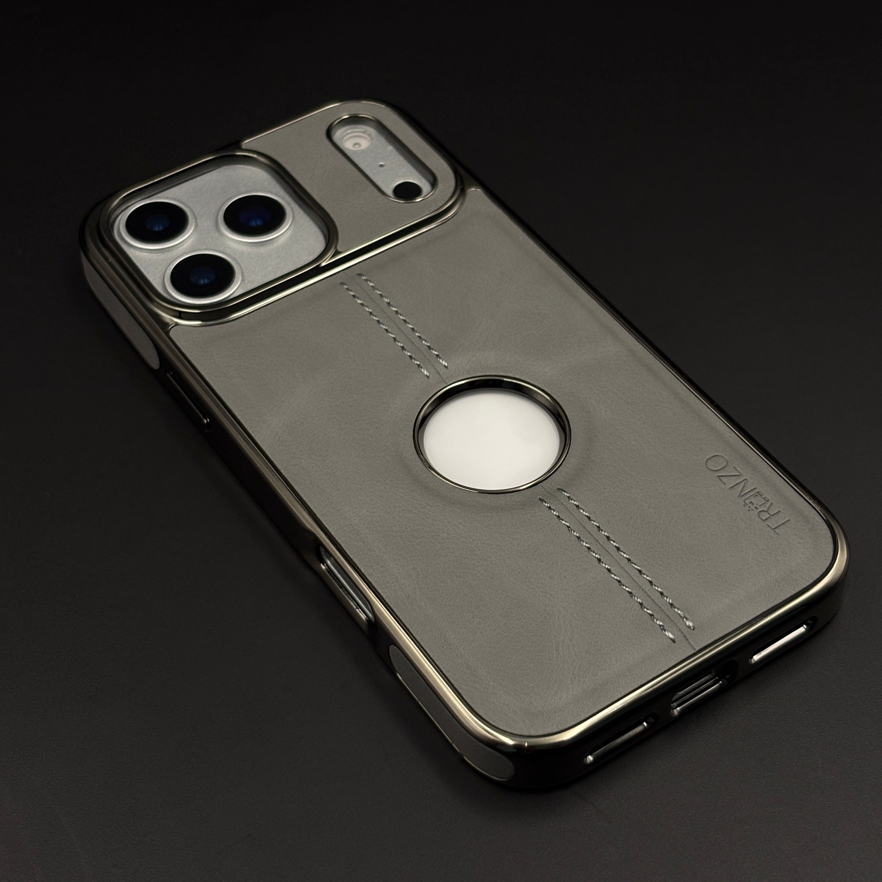 Stitch Leather Chrome Mobile Case Cover for iPhone 17 Series | Logo Cut Back
