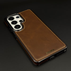 Stitch Leather Hidden MagSafe Case for Samsung Galaxy S26 Ultra | Chrome Trim Luxury