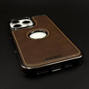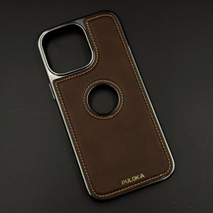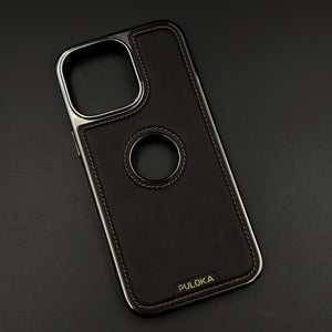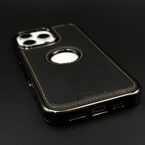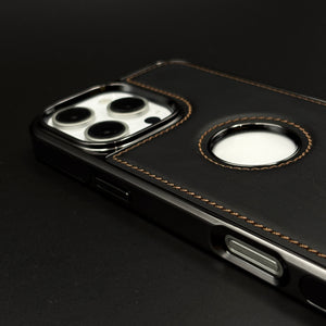 Stitch Leather Hidden MagSafe Phone Case Cover for iPhone | Chrome Trim Luxury