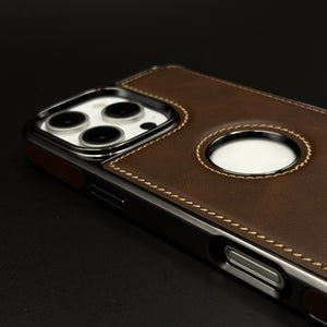 Elevate your iPhone with this stitched leather case featuring a hidden MagSafe ring and stylish chrome accents. Experience a premium blend of comfort, wireless charging ease, and standout durability for daily use.