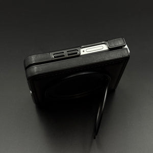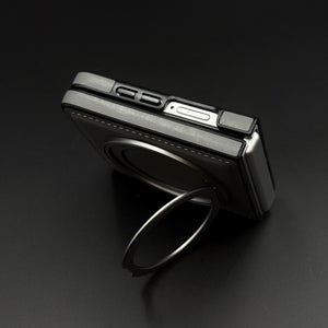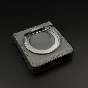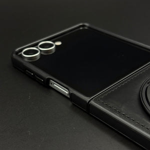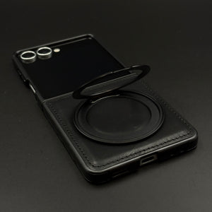 Boost your Galaxy Z Flip 7 with this refined stitch leather case, featuring a 360° rotating metal stand and full MagSafe compatibility. Secure grip, hands-free versatility, and premium craftsmanship unite in this all-in-one accessory.