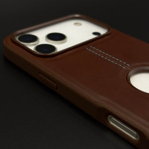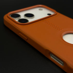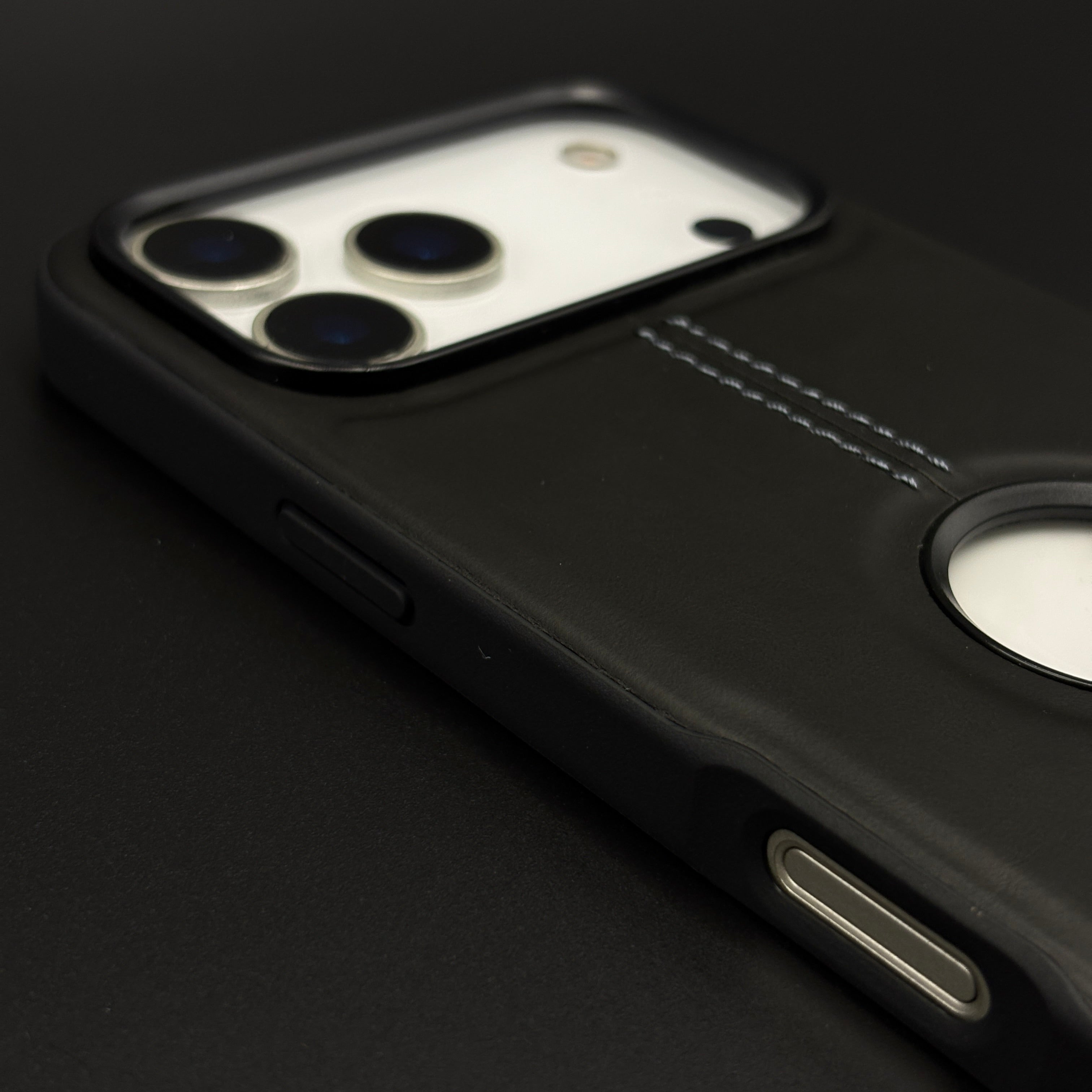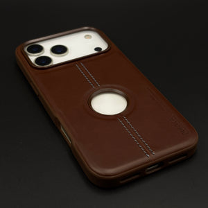 Stitched Leather Logo Cut Mobile Case Cover for iPhone 17 Series