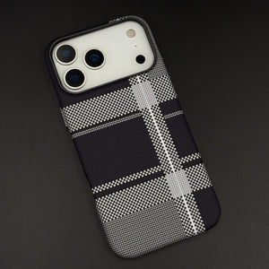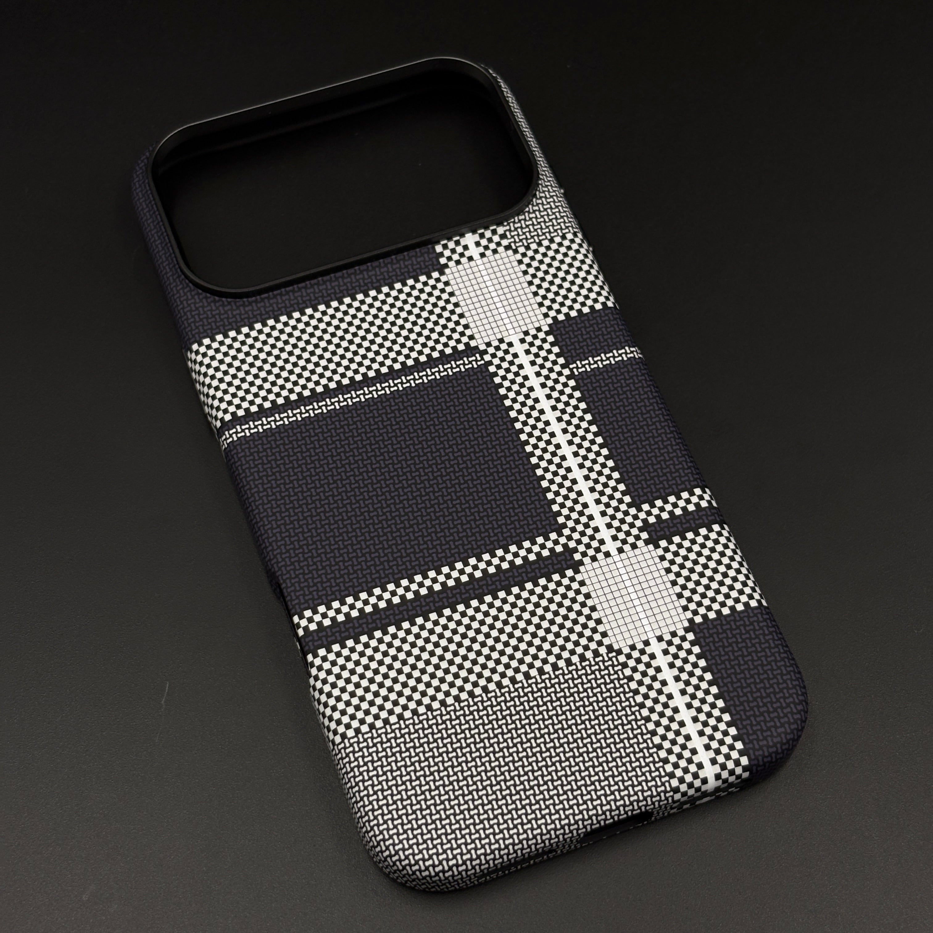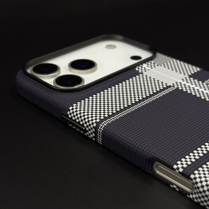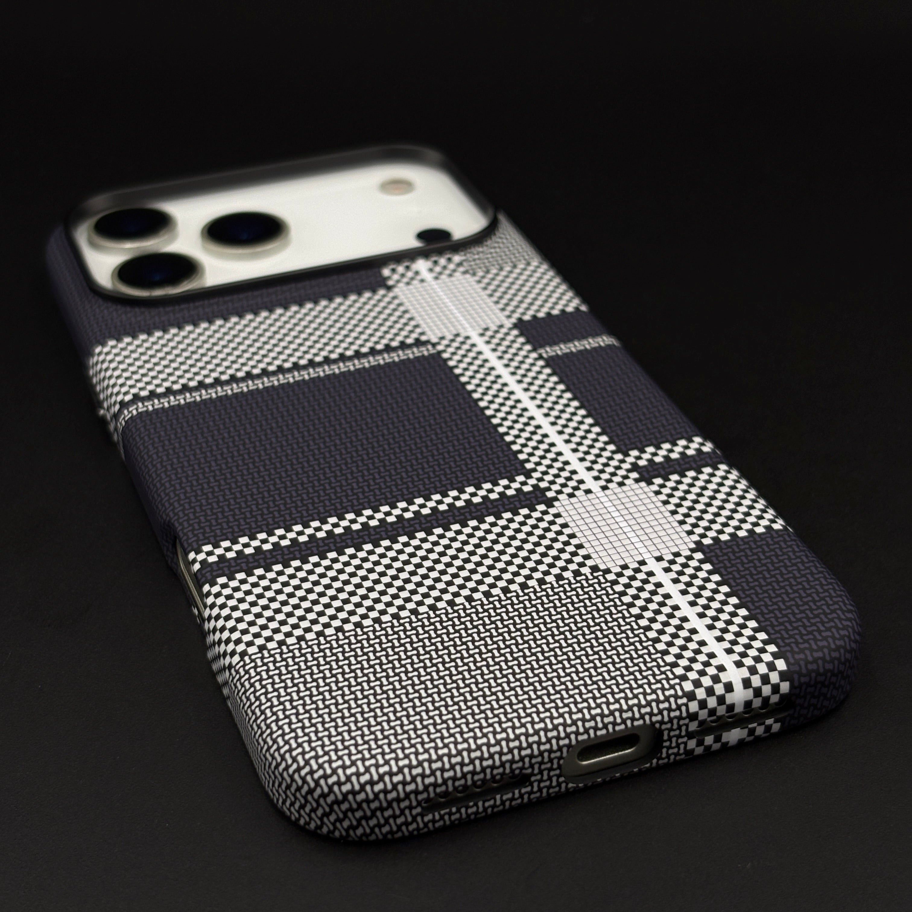 Upgrade your iPhone 17 Series with this striking plaid pattern case—featuring a bold black and white check design, textured for grip and durability, and finished in a hard-shell build for maximum everyday protection.
