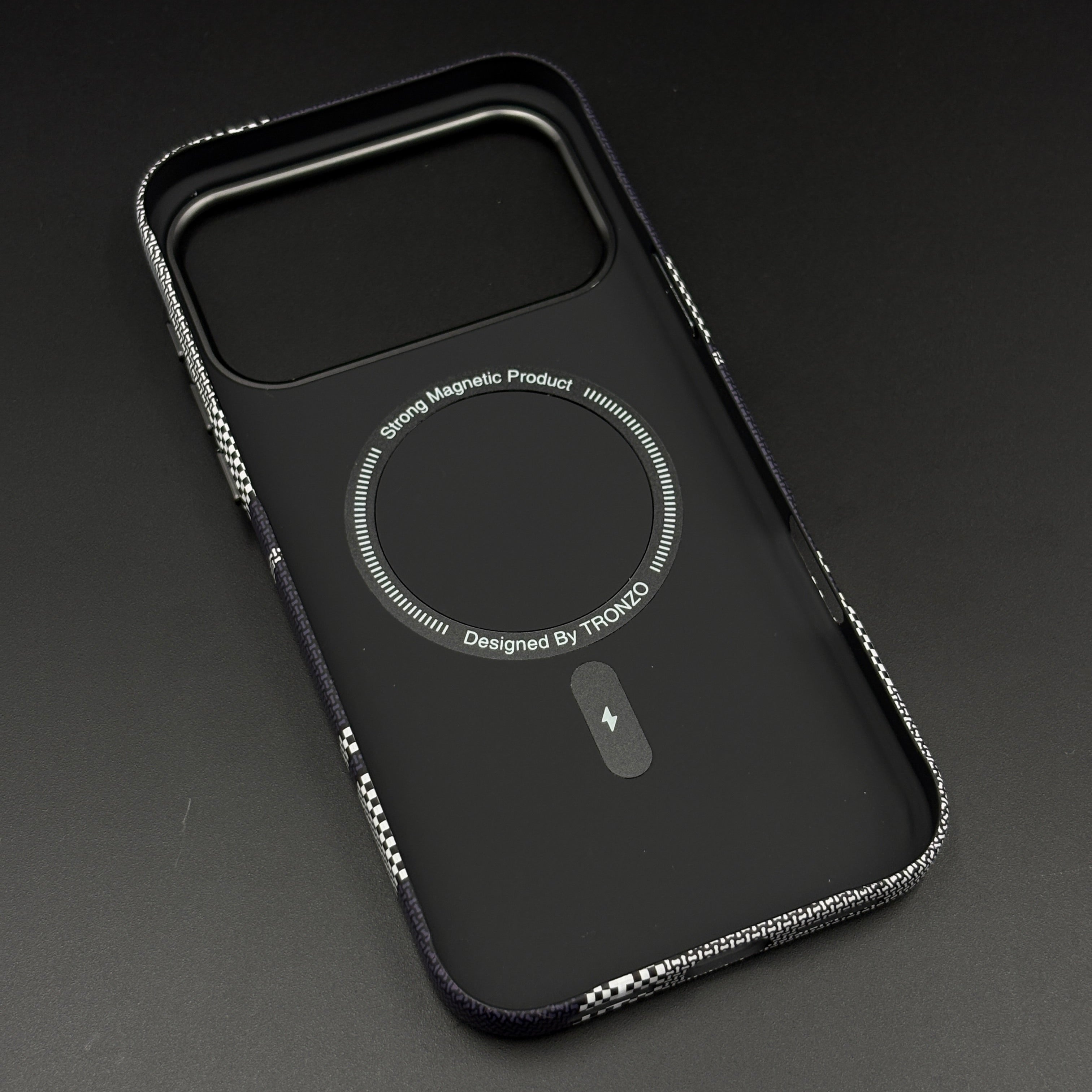 Striped White Slim Mobile Case Cover for iPhone 17 Series | Rare Aramid Texture Finish | Real Carbon Fibre Feel | Hidden MagSafe