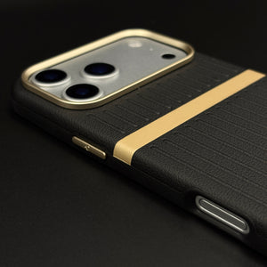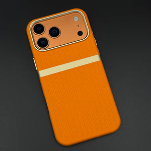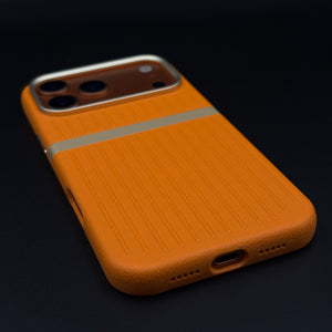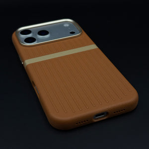 Striped Grip Hidden MagSafe Leather Case for iPhone 17 Series | Premium Camera Frame Back Cover