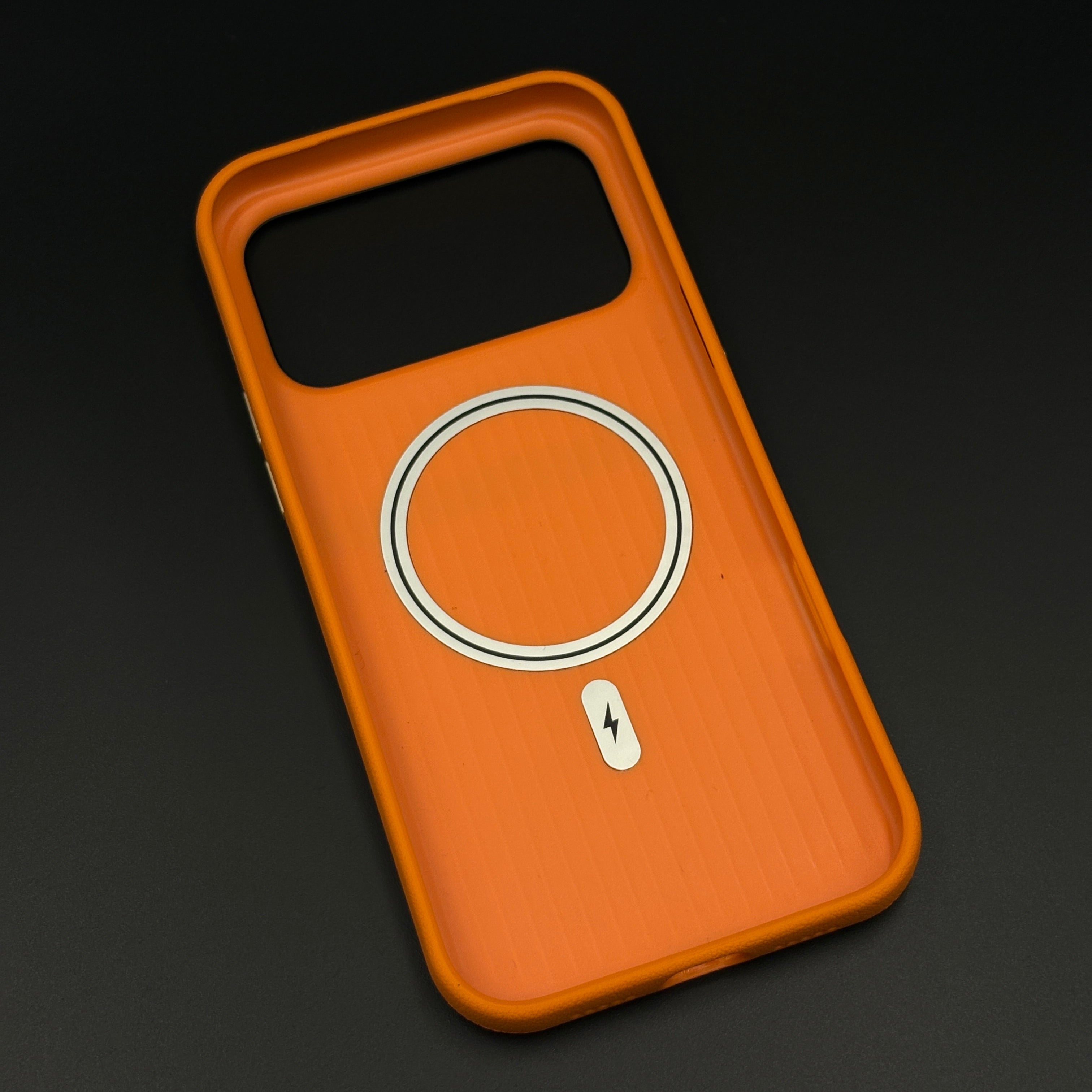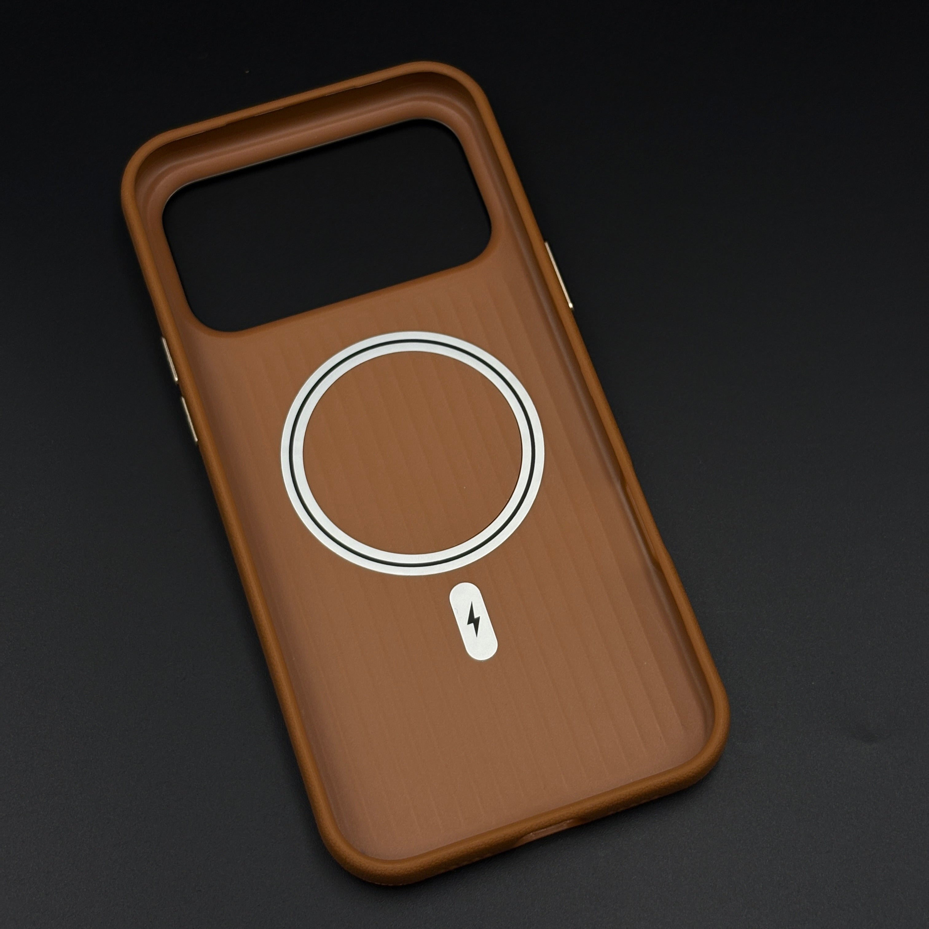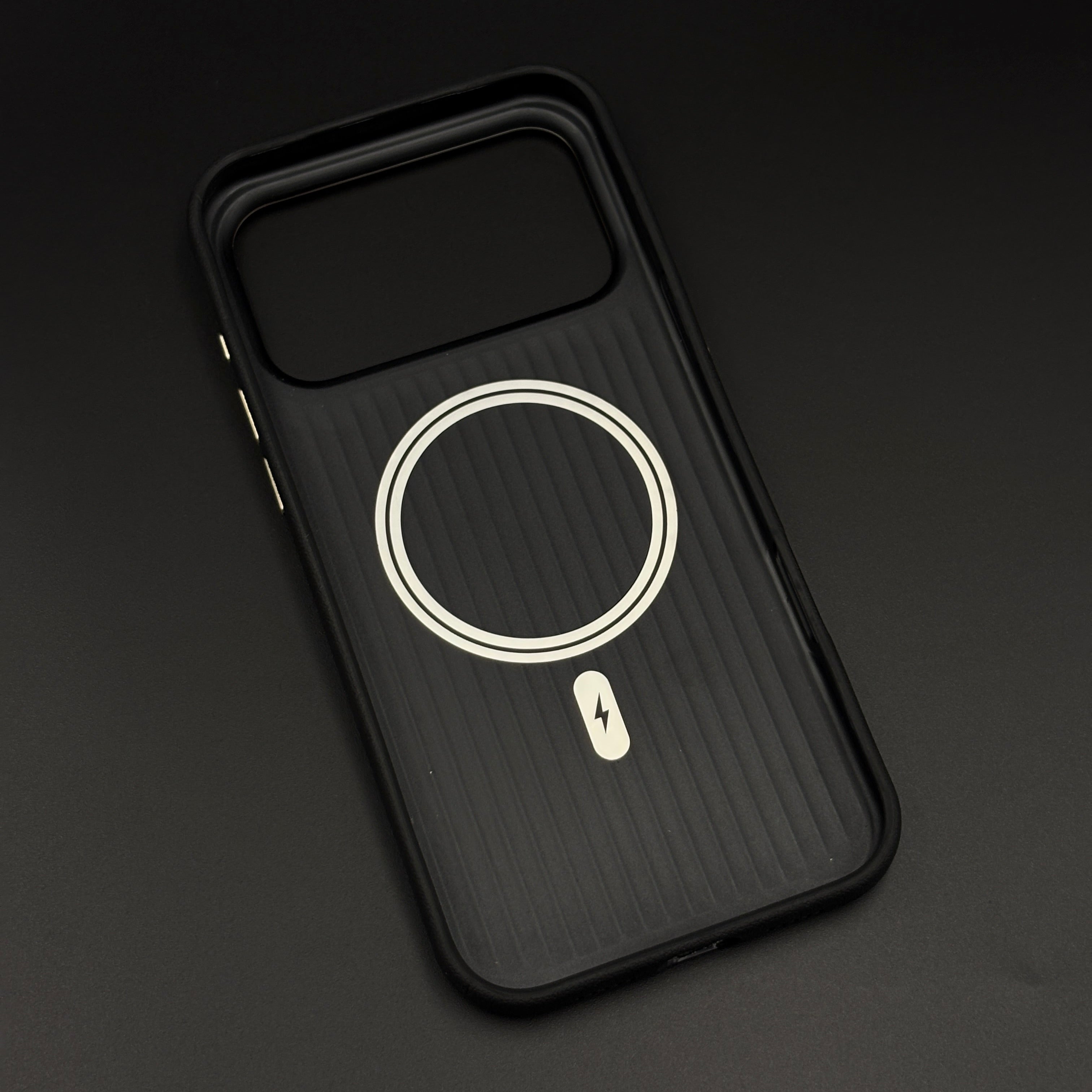 Style your iPhone 17 Series with this striped grip hidden MagSafe leather case, featuring a textured back for better hold, integrated concealed MagSafe compatibility, and a raised camera frame for everyday protection and premium appeal.