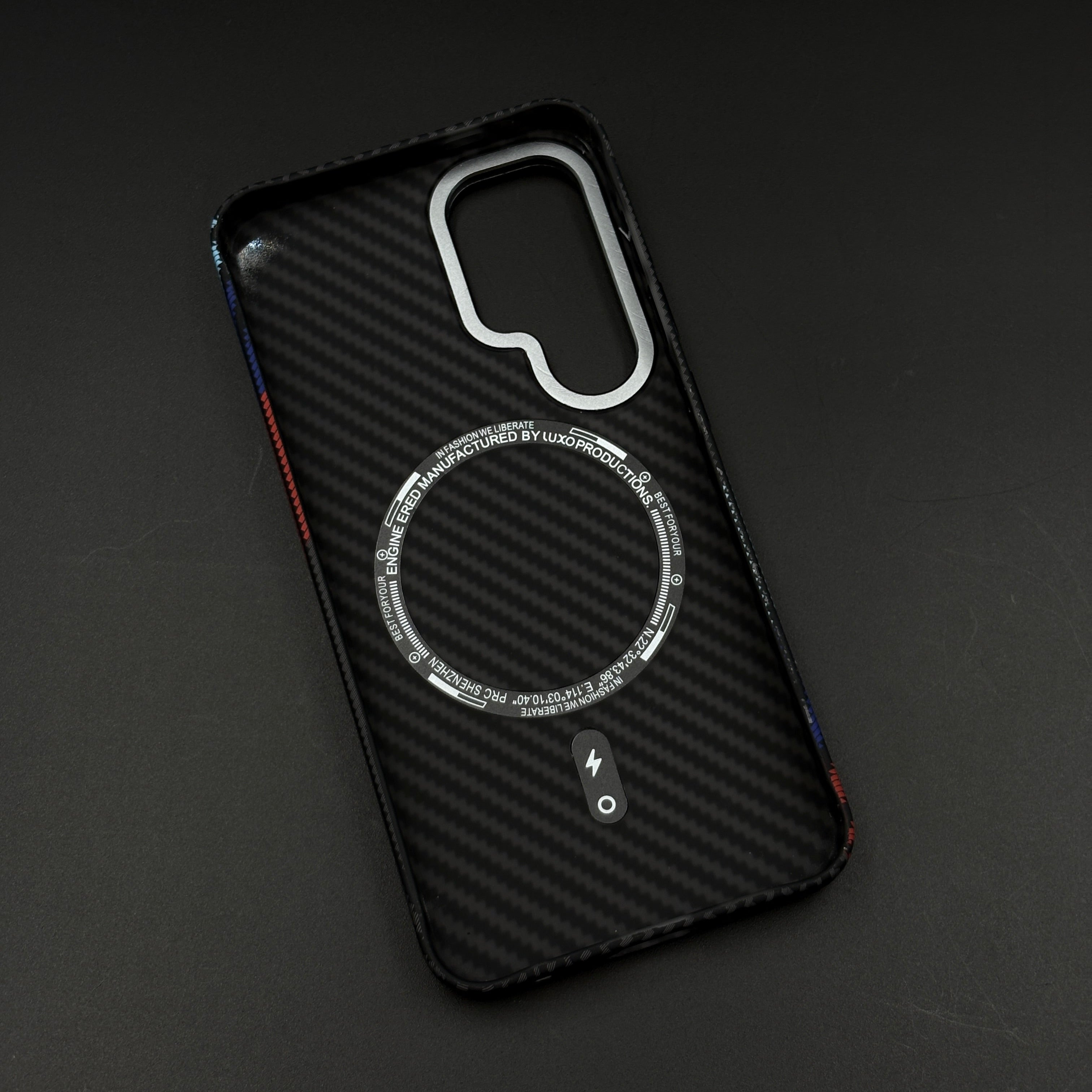 Two-Tone Aramid Case with Hidden MagSafe for Samsung Galaxy S24 | Camera Kickstand | Carbon Fibre Feel
