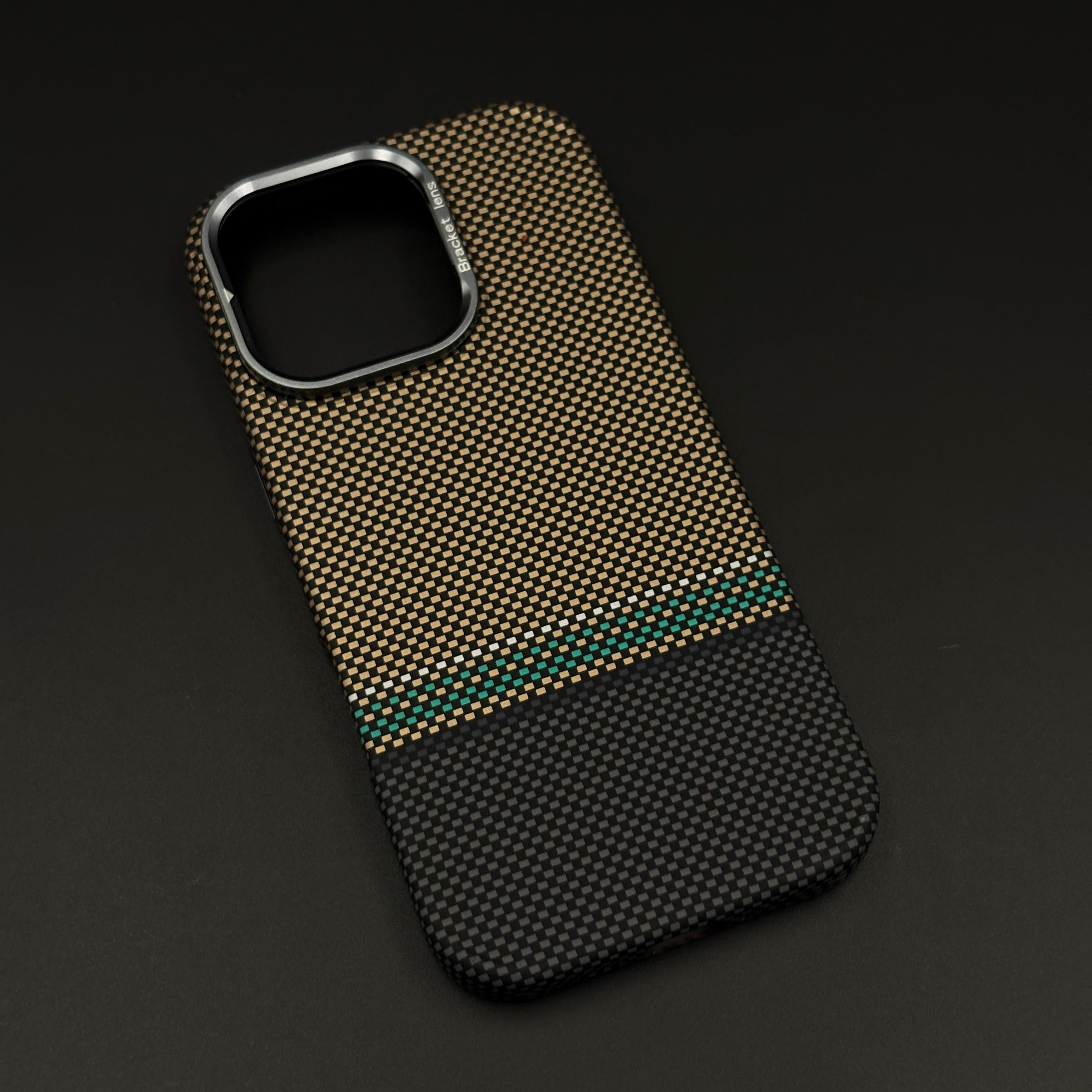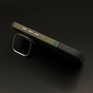 Two-Tone Aramid Phone Case Cover Hidden MagSafe for iPhone Series | Camera Kickstand | Carbon Fibre Feel