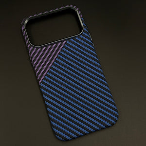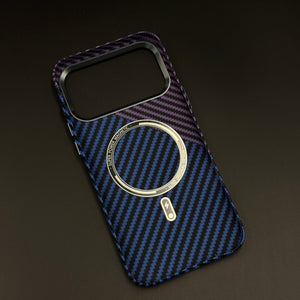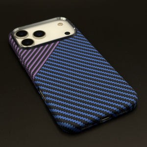 Give your iPhone 17 series a sleek performance look with this Violet Blue Split Carbon Fibre Hidden MagSafe Case, combining a dual‑tone carbon weave design with built‑in MagSafe compatibility hidden beneath a slim protective shell.