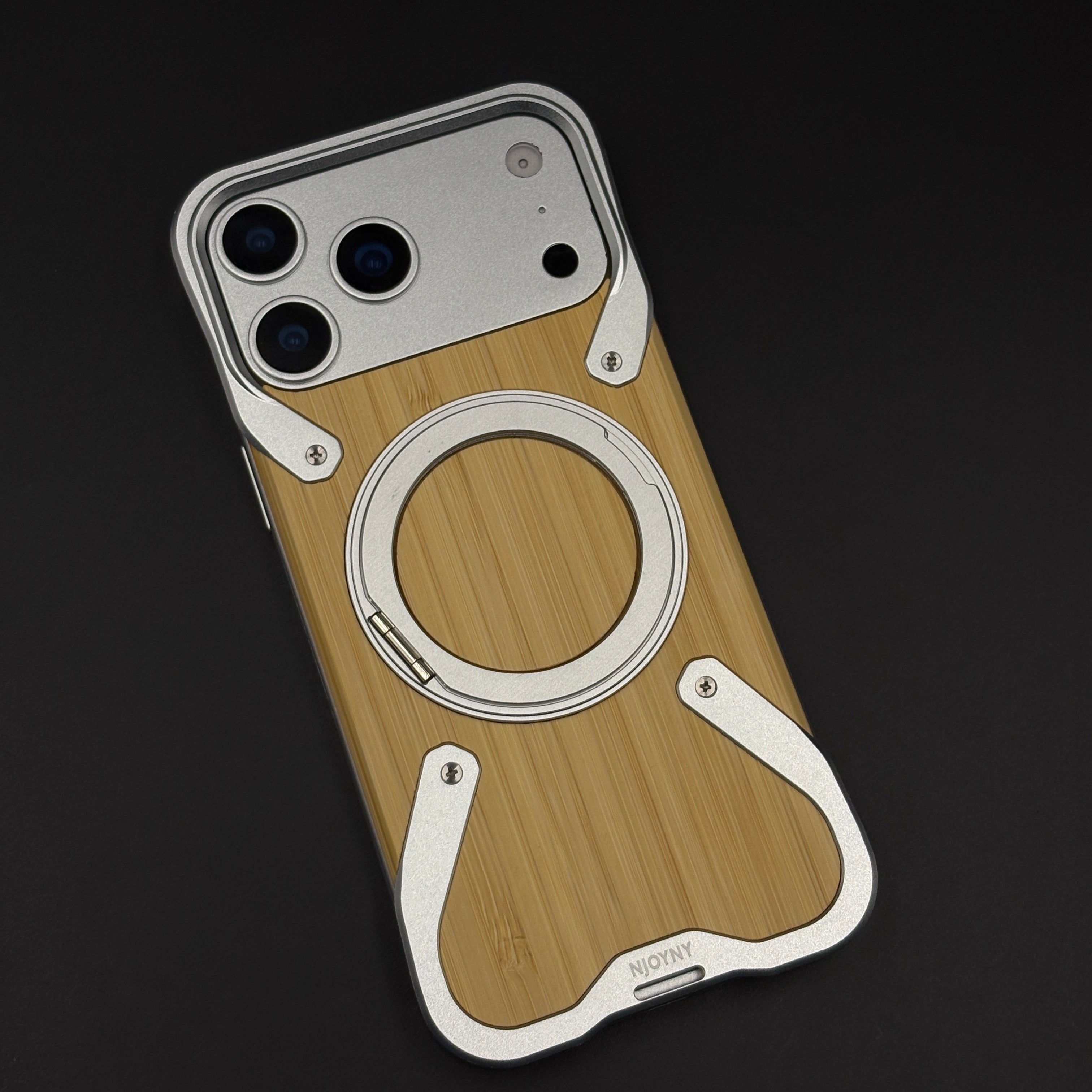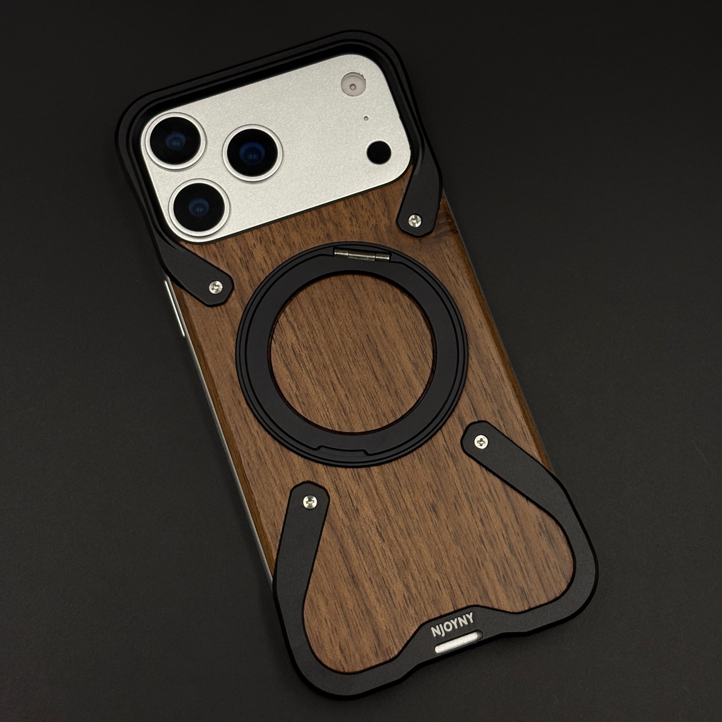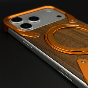 Style your iPhone 17 Series with this wood grain metal ring stand case, combining a warm wooden back panel, industrial metal accents, and a built‑in magnetic ring that works as both grip and kickstand for hands‑free viewing.