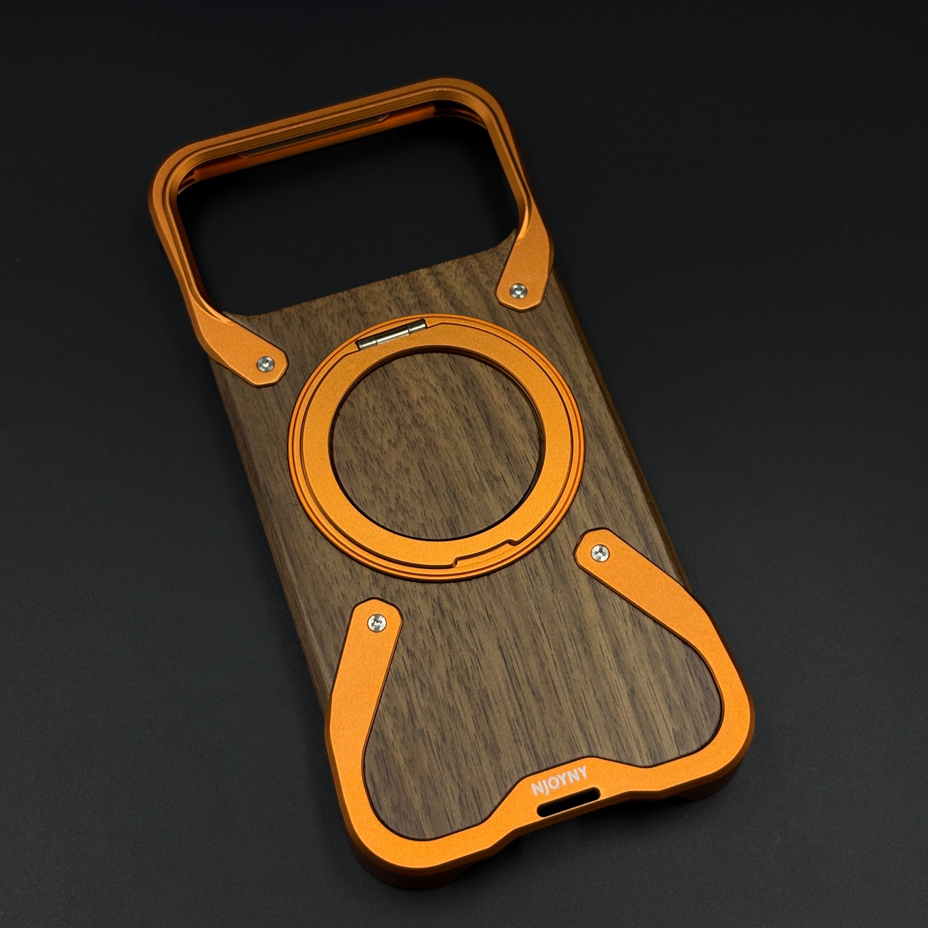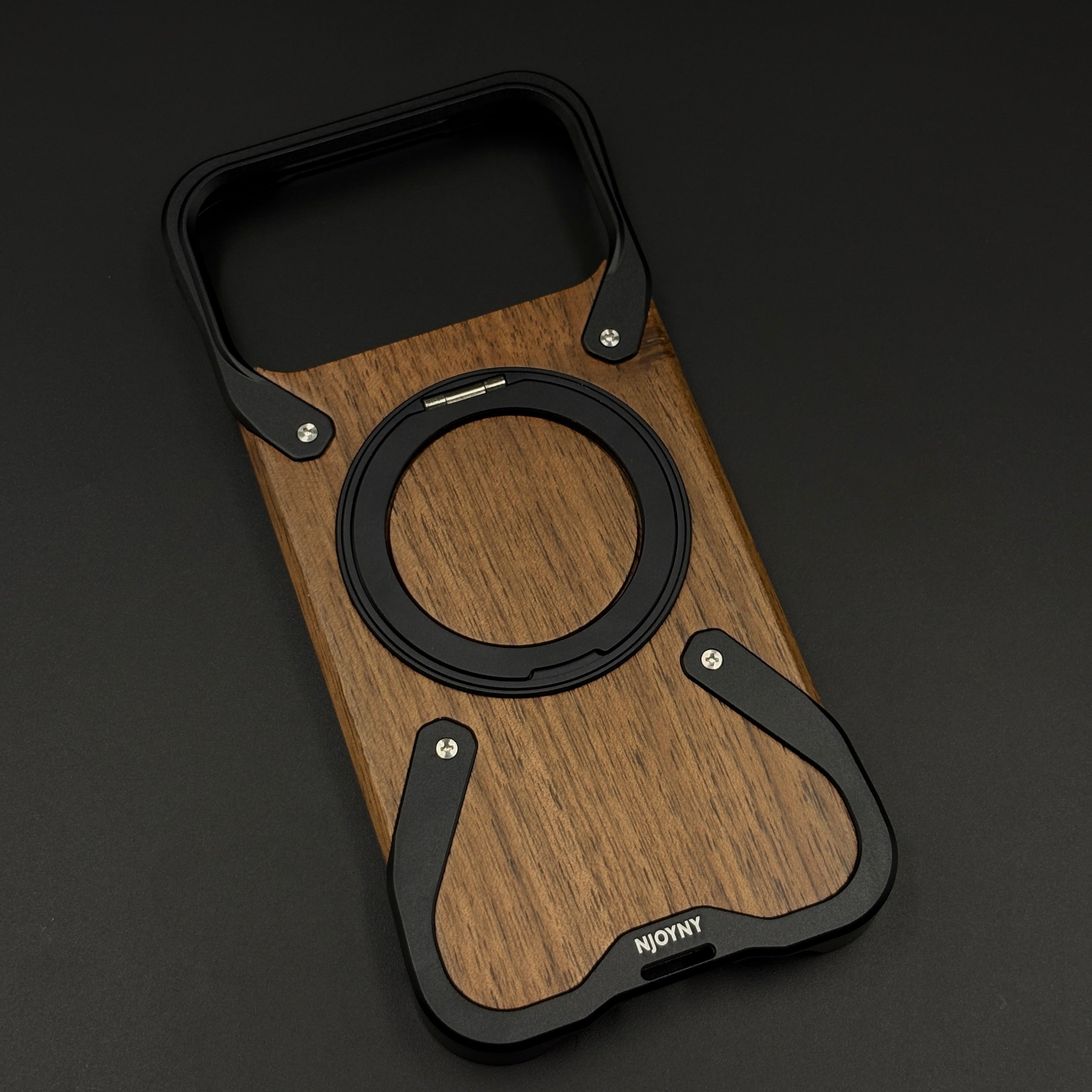 🛡️ Metal Corner Brackets – Screwed‑in metal brackets at the top and bottom reinforce corners and give the case a rugged, mechanical aesthetic while helping absorb impacts.