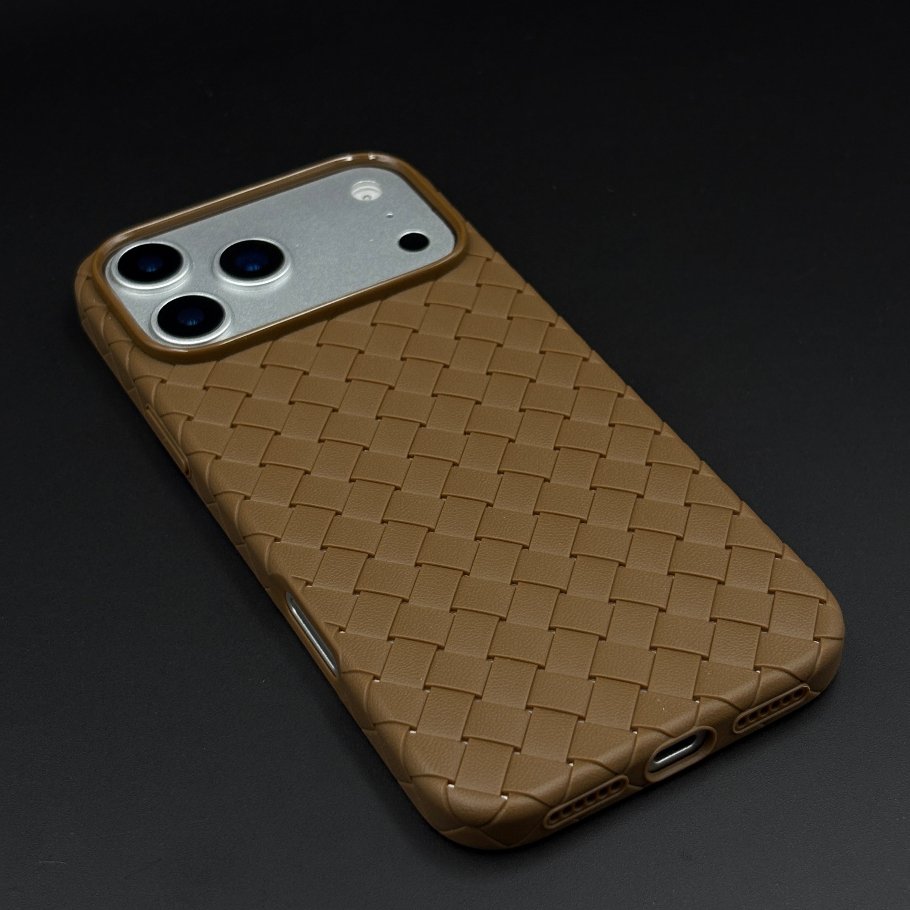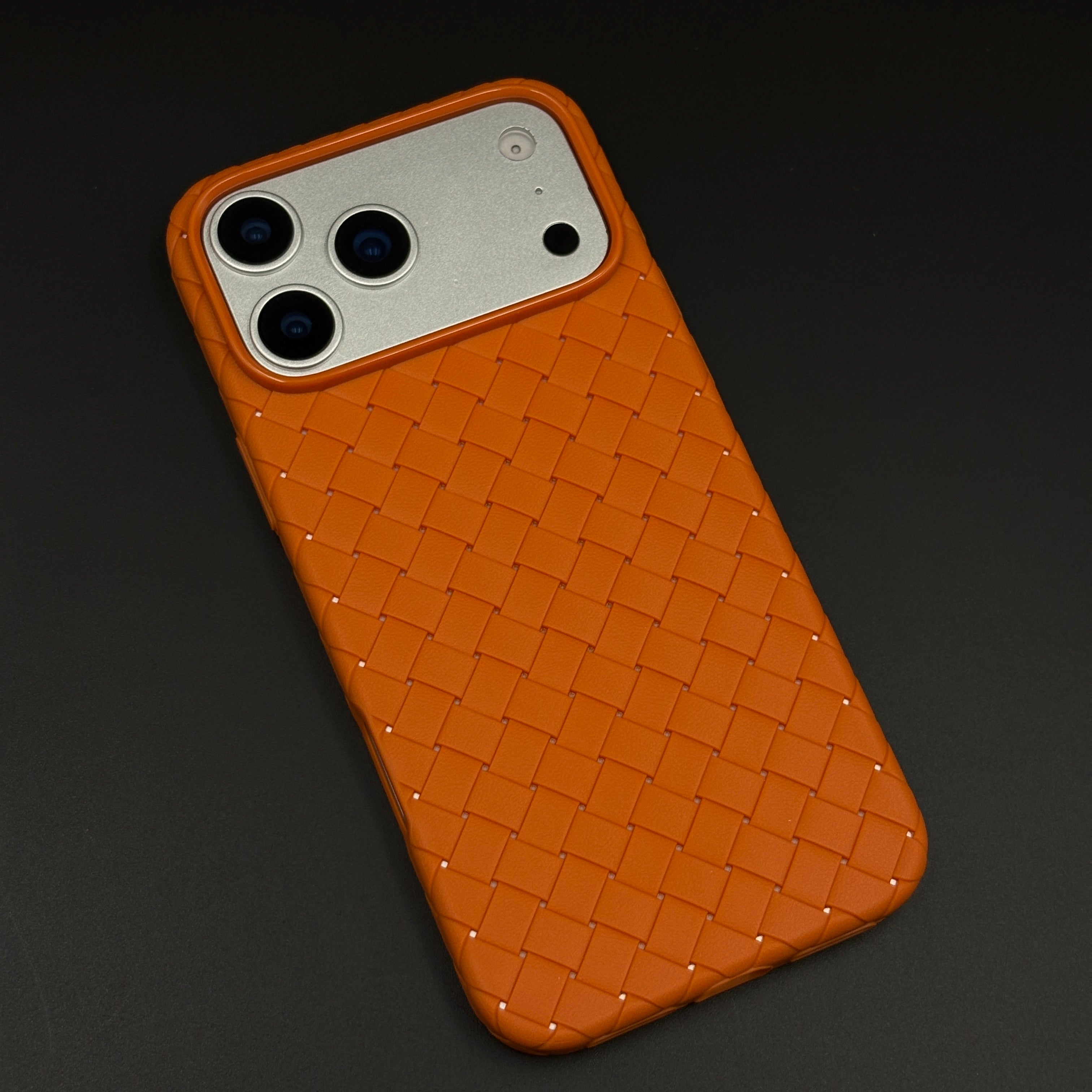 Give your iPhone 17 Series a bold, premium look with this woven leather case, featuring a 3D basket‑weave pattern for secure grip, soft inner lining, and full camera and port protection in a slim, pocket‑friendly profile.
