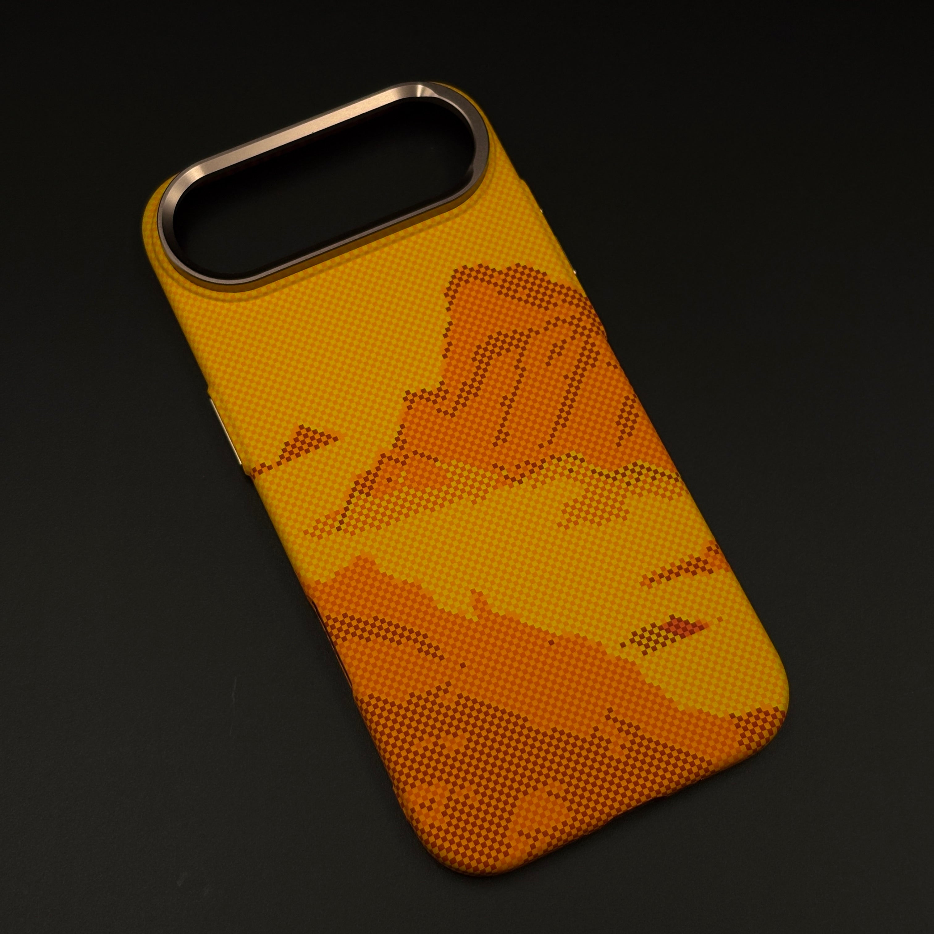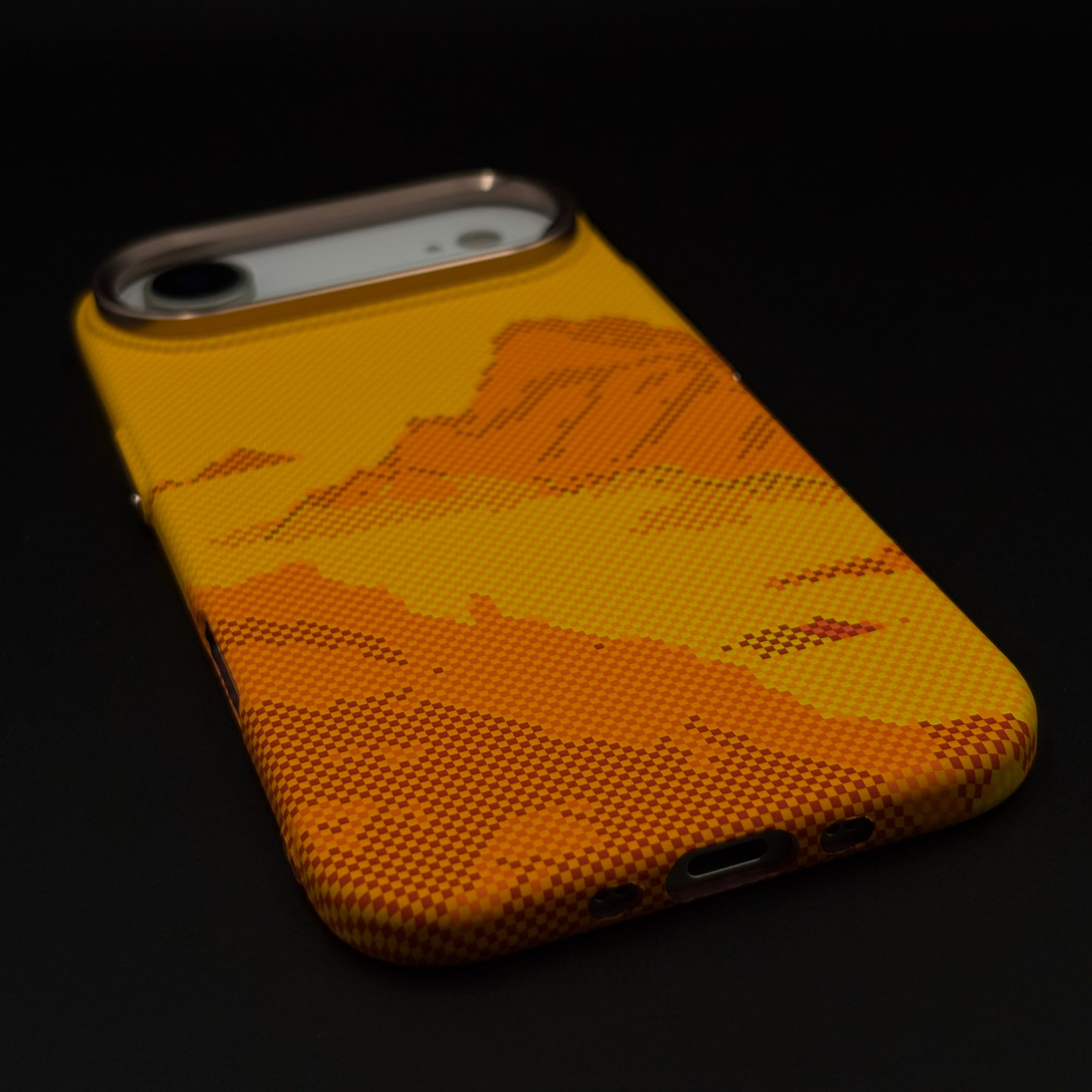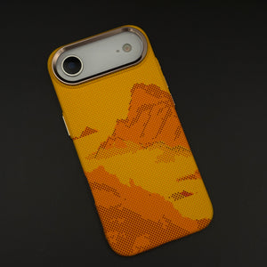 Brighten your iPhone 17 Air with this Yellow Canyon Art Case—featuring a bold, pixel-style landscape in deep yellow and orange, plus a premium metal camera bumper for modern protection and standout style.
