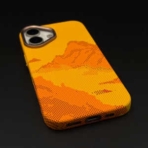 Brighten your iPhone 17 with this Yellow Canyon Art Case—featuring a bold, pixel-style landscape in deep yellow and orange, plus a premium metal camera bumper for modern protection and standout style.